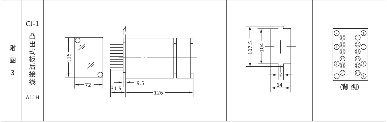 ZJC-3靜態(tài)沖擊繼電器內(nèi)部接線及外引接線圖(正視圖)
