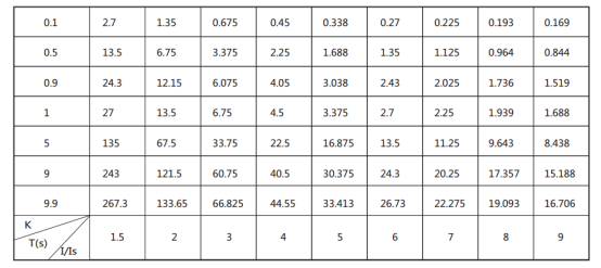 8、典型反時(shí)限特性,見下表: