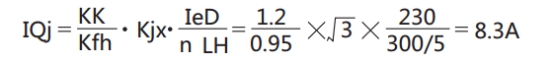 例:已知給水泵電動(dòng)機(jī)的參數(shù)為:額定電壓VeD=6KV,容量PeD=2000kw,額定電流IeD=230A, 啟動(dòng)倍數(shù)JGL-11氣動(dòng)倍數(shù),電流互感器變比 LH=300/5,電動(dòng)機(jī)啟動(dòng)時(shí)間為20S。(二相差式接線)