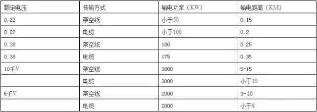 根據(jù)不同的額定電壓推薦不同的輸出容量輸電距離:
